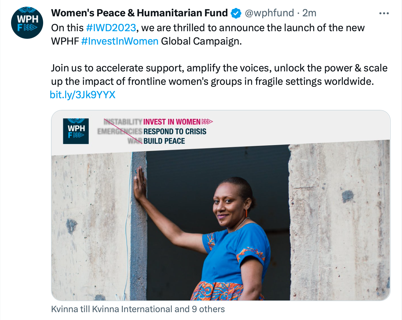 "By investing in women, you are investing in global peace and security. That's why I support the Invest-In-Women campaign and reiterate my call to raise 300 Million USD for women's organizations in crisis situations by the end of 2025. Let's stand together with women working to build a better future for all.